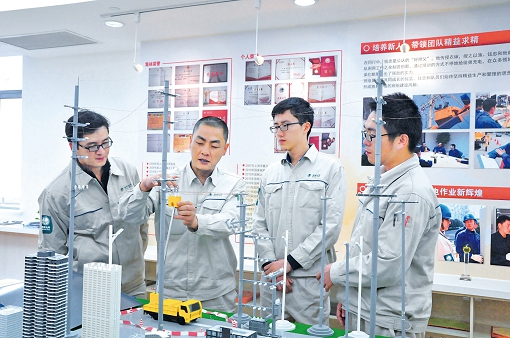 国网检修公司员工在双创基地开展一次设备研究。在最大限度激发内部活力的同时,公司还坚持眼光向外,以开放合作的姿态汇聚更多科创力量。为加快形成产学研用一体的科技创新体系,公司与清华大学、西安交通大学等高校建立了联合研究机构。同时,公司建成“国家级、公司级、各单位级”三级实验室体系,面向全社会开放100个实验室(包括19个国家级实验室),并鼓励社会各界积极参与共建公司各级实验室。公司科技成果孵化转化平台也已建立。2020年,职工创新成果孵化转化达200项,公司直属科研单位年度科技成果转化收入达6.5亿元,特高压换流阀、智能配电终端、安全芯片等一批专利技术的转化落地,有效提升了电网装备技术水平。依托丰富的科技创新成果,公司形成了规划设计、投资运营、工程建设、装备制造、技术标准一体化“走出去”的国际合作模式。截至目前,公司累计主导编制国际标准84项,推动515项中国标准在“一带一路”沿线国家应用,显著提升了我国在国际电工领域的影响力和话语权。日益完善的科技创新体系和日趋成熟的成果转化机制,培养了越来越多优秀的科技创新人才。目前,公司共拥有国家级专家人才365名,两院院士7名,国家有突出贡献的中青年专家13名,百千万人才工程国家级人选28名,中华技能大奖获得者5名。